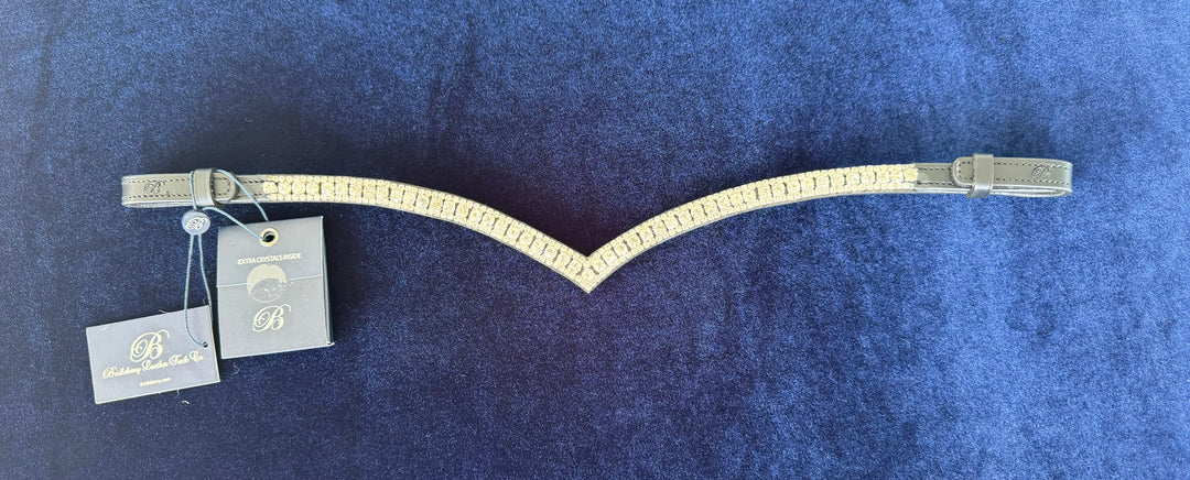 #205 browband Curved Black Leather, Center Row of Crystals Edged w/small Crystals
