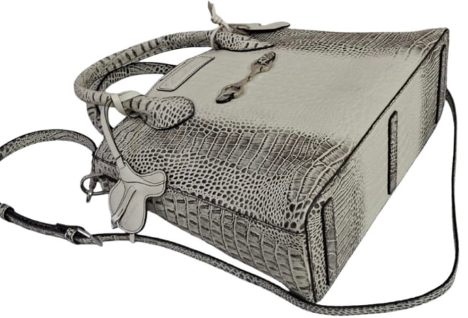 ​The leather is meticulously finished with a striking crocodile embossed pattern in a sophisticated light grey and off-white palette. This textured finish provides a high-end, exotic aesthetic without sacrificing durability.